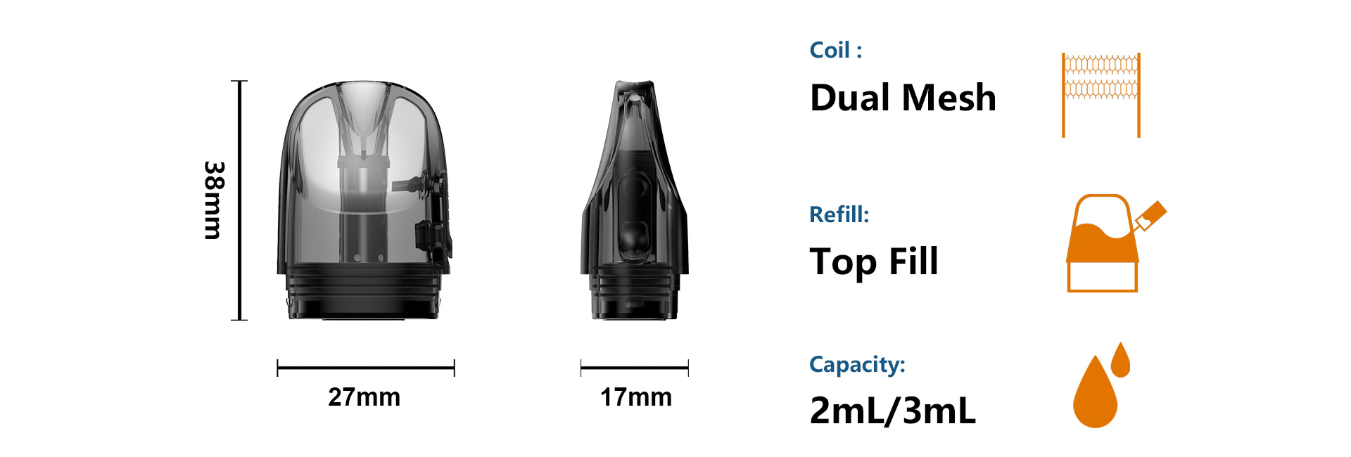 The 2ml transparent pod features a clean side-filling system for easy fillings and minimal mess. Each pack includes 3 pods, designed for convenience.